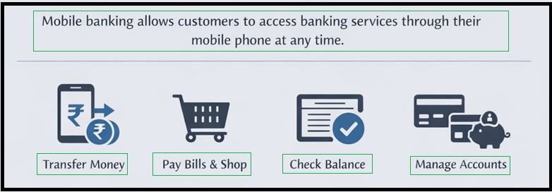 Mobile banking allows customers to access banking services through their mobile phone at any time.