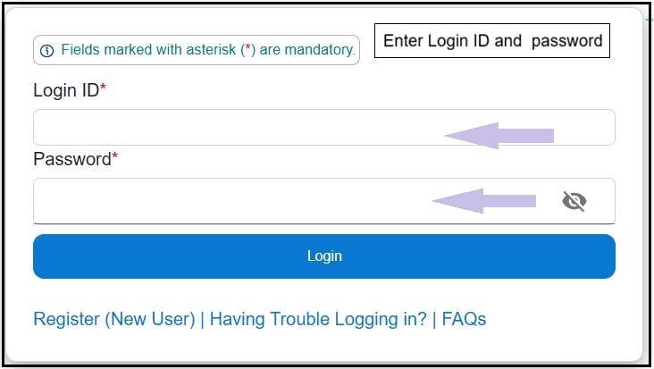 - Click on the “Login”→Enter your Login ID / Email ID→Enter your Password.