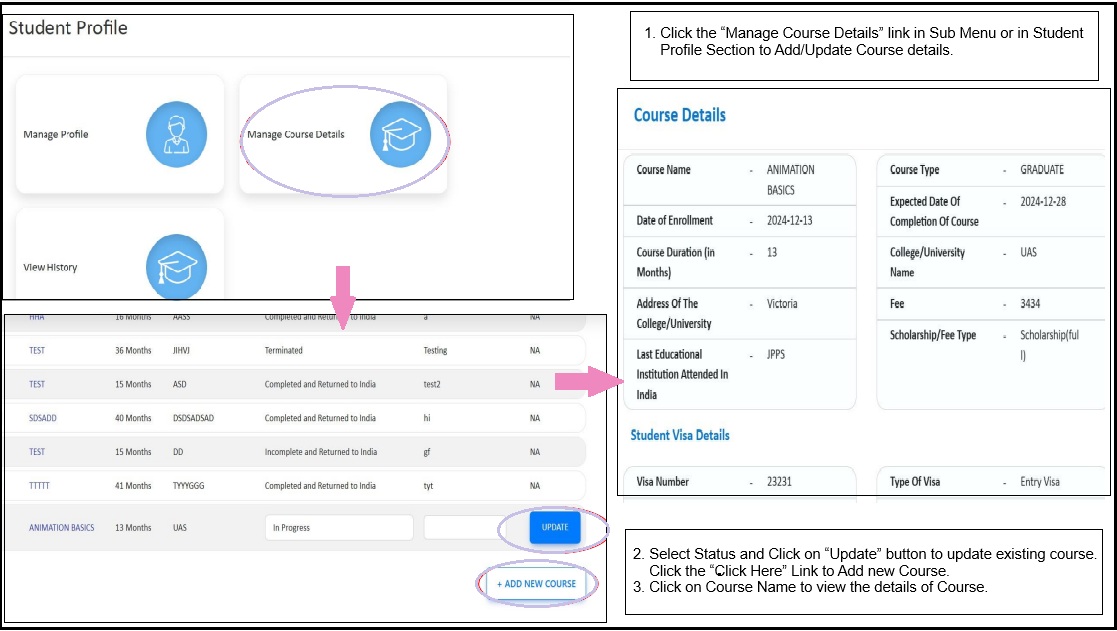 - After login→Go to Student Profile→Manage Course Details→ Update study details.