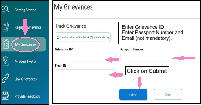 - Click on "My Grievance" in sidebar to Track Grivance.