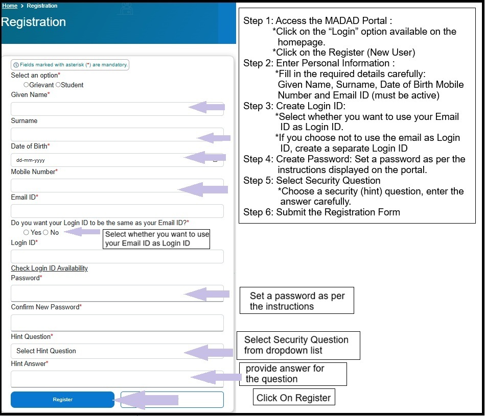 - Fill in the required details carefully : Given Name, Surname, Date of Birth, Mobile Number and Email ID (must be active)
