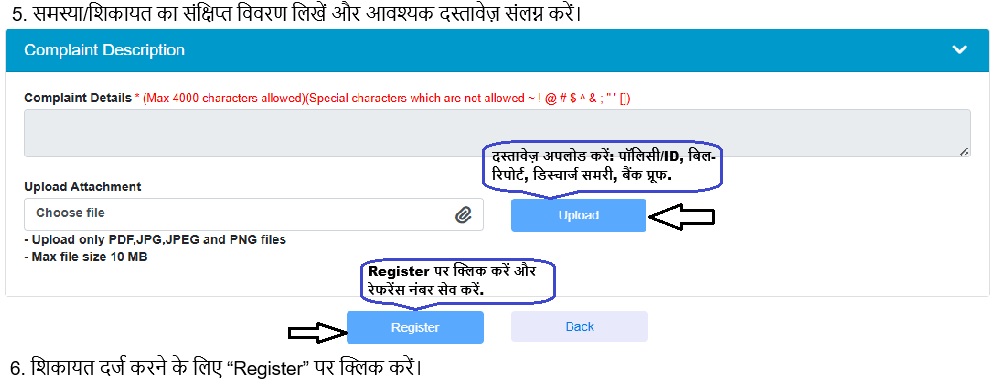 समाधान न मिले तो IGMS (Bima Bharosa) portal पोर्टल पर ऑनलाइन शिकायत दर्ज करें या IRDAI से संपर्क करें:
