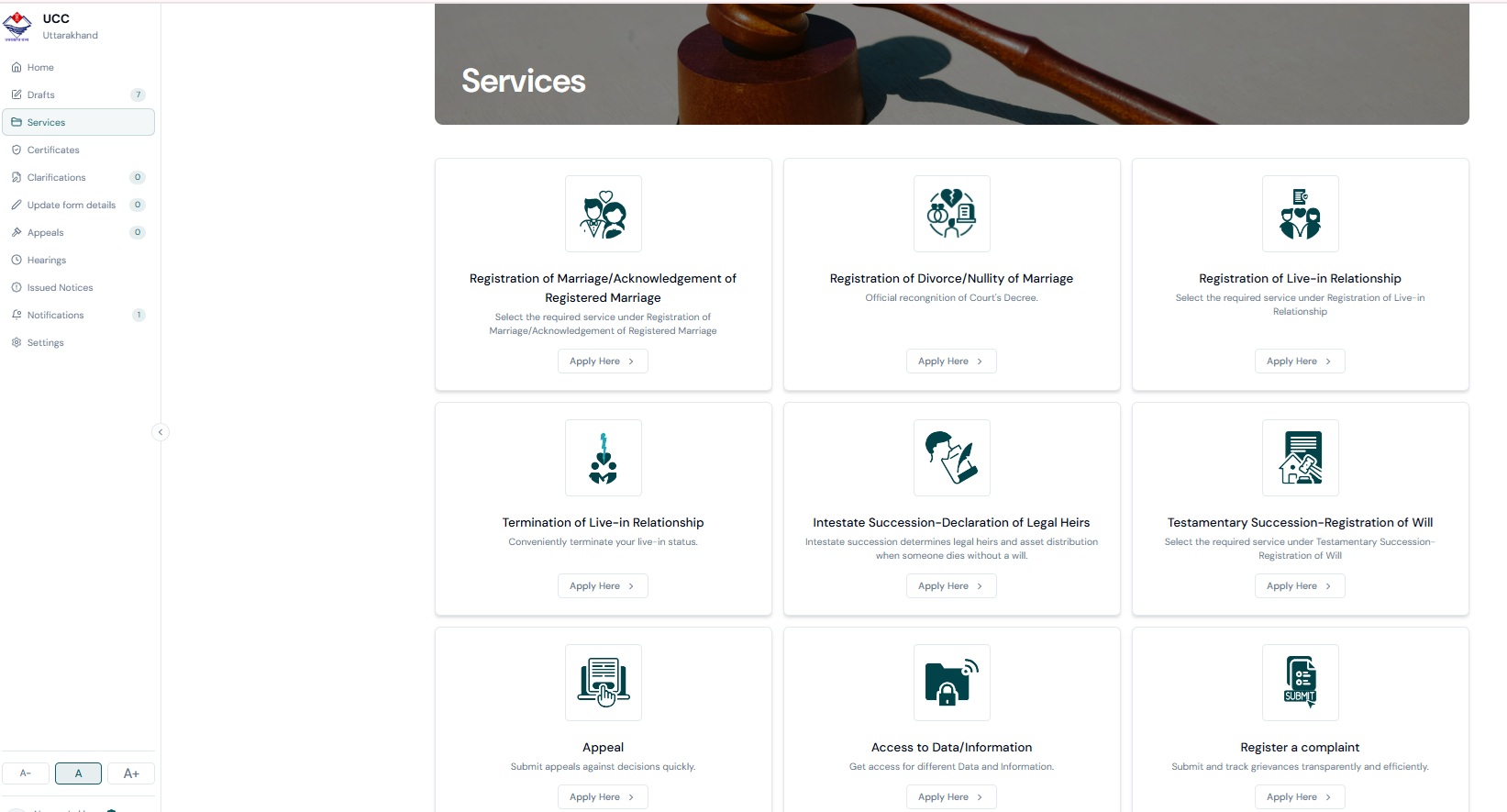अब आपका UCC अकाउंट बन चुका है। आप UCC डैशबोर्ड से सभी सर्विसेज का उपयोग कर सकते हैं, जैसे: